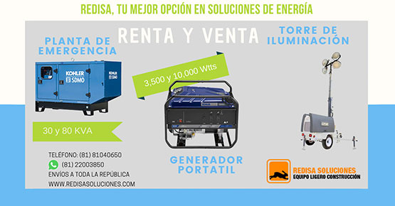 Planta de emergencia, Generador portatil, Torre de Iluminación.
